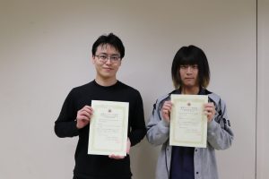 10月に開催された第15回化学フェスタで、野中君、吉田君が、優秀ポスター発表賞を受賞しました!
